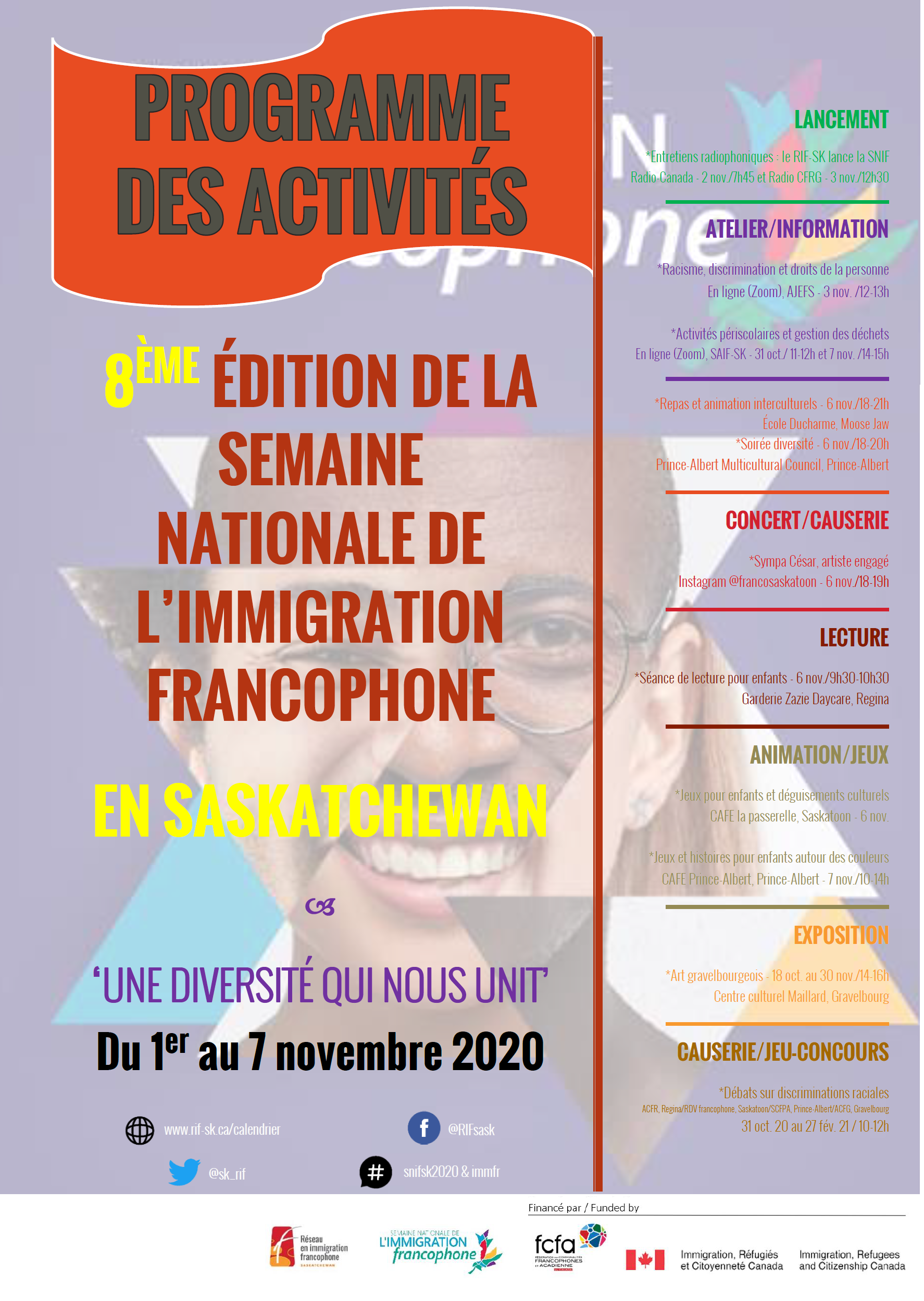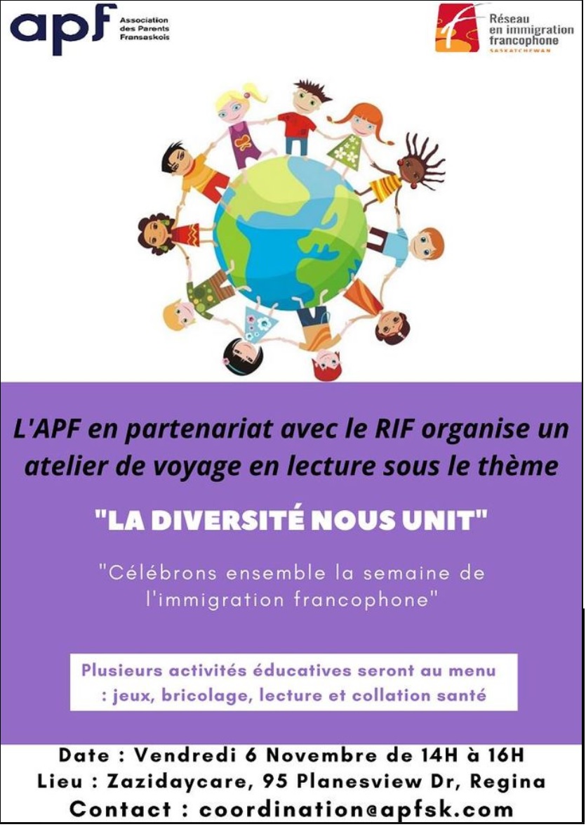 Une activité offerte dans le cadre de la Semaine nationale en immigration francophone 2020 en Saskatchewan, coordonnée par le RIF-SK.