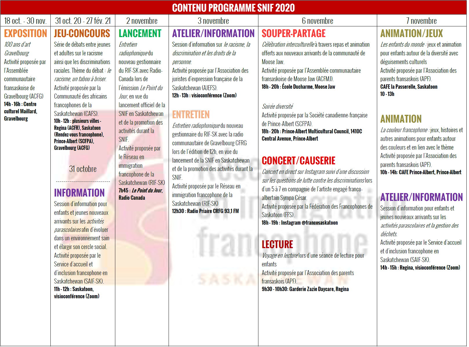 6 novembre 2020 – 17h 30Prince-Albert Multicultural Council, 1410C Central Avenue, Prince-Albert