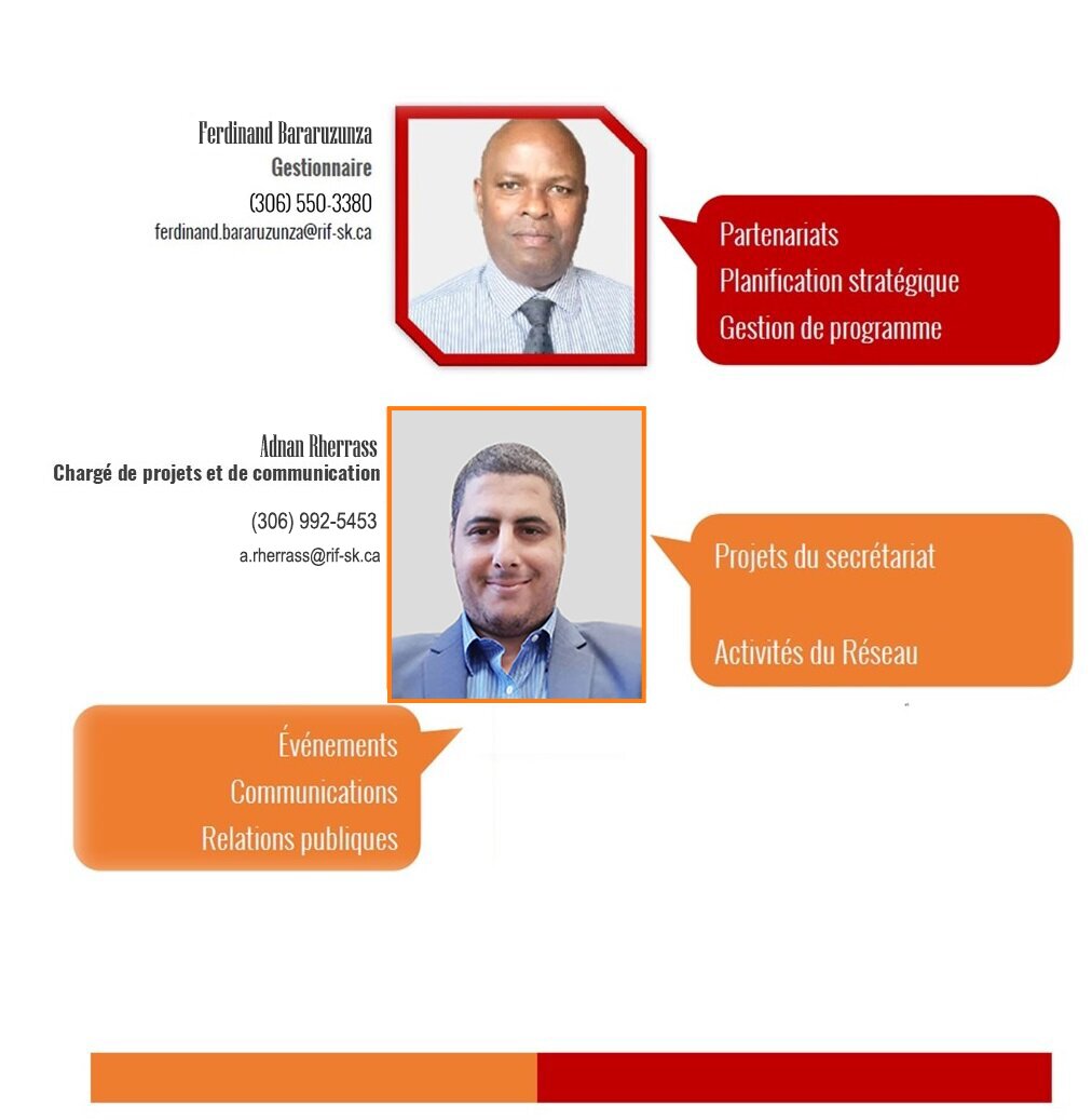 http://www.rif-sk.caAdnan Rherrass a occupé les postes de coordonnateur de projet et de coordonnateur des services d’établissement au SAIF-SK, où il a accompagné de nombreux nouveaux arrivants dans leur parcours d’intégration en Saskatchewan. Il possède une solide expérience internationale dans des projets axés sur l’environnement, la justice sociale et la démocratie. Il est également reconnu pour sa maîtrise des outils de communication et de marketing, qu’il met au service de la gestion de projets communautaires et de la mobilisation des partenaires.