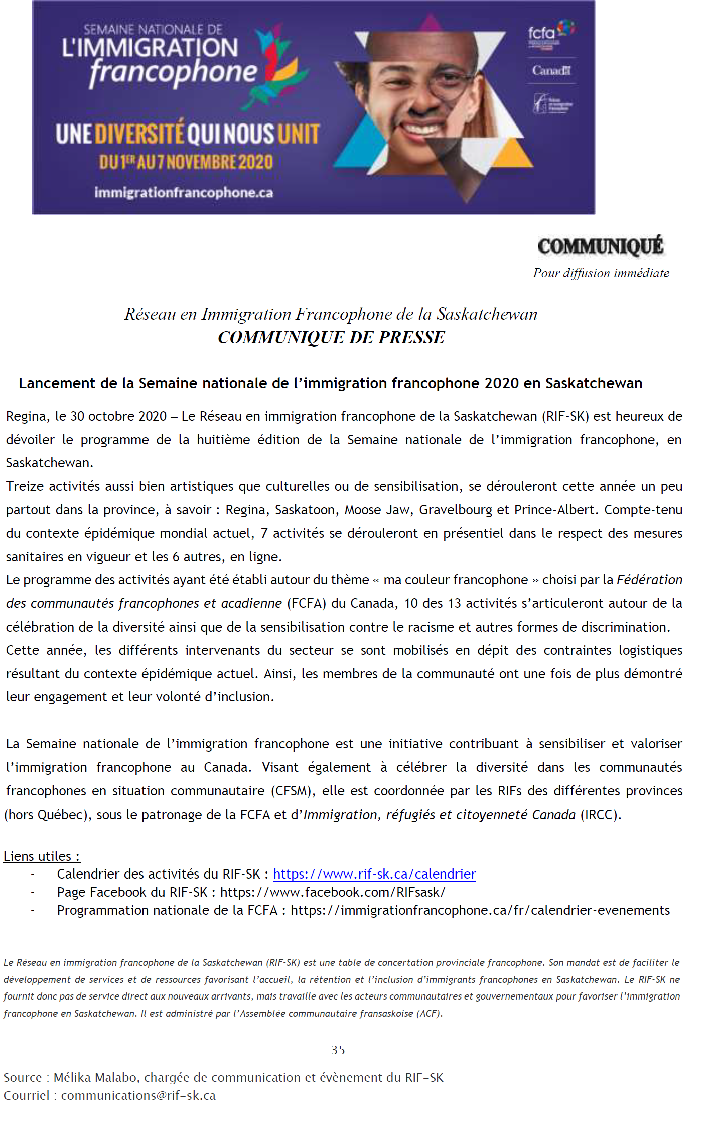 Lancement de la 8ème Semaine nationale de l'immigration francophone